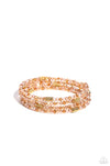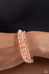 Sections of clear, champagne, and gold beads are threaded along the wrist in an infinity wrap-style bracelet for a dreamy statement.