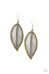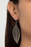 Bordered in dainty green rhinestones, a life-like stenciled silver leaf swings from the ear for a dash of glitzy whimsicality. Earring attaches to a standard fishhook fitting.