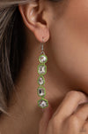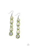 Featuring Kohlrabi rubber-like frames, a glassy collection of white round, teardrop, hexagonal, and emerald-cut gems trickle from the ear for a shoulder-dusting fashion. Earring attaches to a standard fishhook fitting.