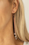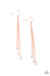 A trio of dainty white rhinestones sparkle like dewdrops as they dangle from the ends of dainty copper chains for a refreshingly divine lure. Earring attaches to a standard fishhook fitting.