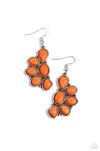 Featuring pronged silver fittings, an earthy collection of round, teardrop, and triangular cut orange stones delicately coalesces into a half moon frame for an artisan inspired flair. Earring attaches to a standard fishhook fitting.
