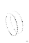 Flat silver bars delicately braid into an infinity inspired hoop for a sleek look. Earring attaches to a standard post fitting. Hoop measures approximately 2 3/4" in diameter.