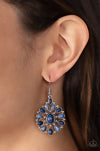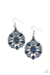 Bubbly navy blue and Spring Lake beads fan out from a studded navy blue teardrop center, resulting in a colorful frame. Earring attaches to a standard fishhook fitting.