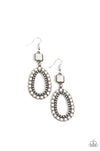 A white stone, chiseled into a polished square, gives way to a silver studded hoop bordered in dainty stones in the same shade, creating a rustically scalloped lure. Earring attaches to a standard fishhook fitting.