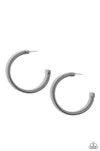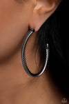Shimmering gunmetal spins into an oversized twisted rope as it curves into a classic thick hoop design. Earring attaches to a standard post fitting. Hoop measures approximately 2" in diameter.