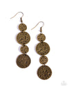 Stamped in a weathered pattern, antiqued brass discs delicately alternate into a rustic lure for an earthy vibe. Earring attaches to a standard fishhook fitting.