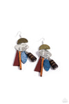Featuring a variety of textures, patterns, and sheens, green half-moon and hammered abstract frames stack into an exotic-inspired lure. Textured, striped, shell, acrylic, and wooden accents in a motley of colors dangle from the stacked lure for a trendy fringe. Earring attaches to a standard fishhook fitting.