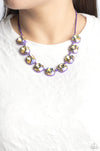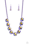 Featuring a vivacious purple chain, a collection of purple UV shimmery cushion-cut gems, pressed in vibrant purple frames, coalesces around the collar to create a playful pop of color. Features an adjustable clasp closure.