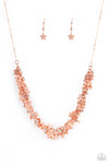 Featuring textured petals, a dainty collection of shiny copper flower frames and glassy white rhinestones delicately cluster along the bottom of a shiny copper chain for a flirtatious floral look below the collar. Features an adjustable clasp closure.
