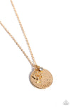 Hanging down the neckline, a gold disc, hammered in a high-sheen finish features the stamped word "faith". Gliding from a dainty gold chain, a detailed tree charm and a dainty white rhinestone pressed into a gold frame finish the design with a sparkly flourish. Features an adjustable clasp closure.