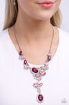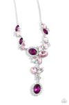 Featuring an iridescent shimmer, an unexpected explosion of oversized various pink oval and marquise-cut gems cluster into haphazard groupings. Silver-pronged white rhinestones sporadically dot across the abstract canvas and encircle a few iridescent ovals for additional shimmer. The blinding clusters link together, creating a soft statement piece that cascades below the collar. Features an adjustable clasp closure. Due to its prismatic palette, color may vary.