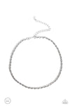 An ornate silver rope chain links around the neck, resulting in an edgy minimalist inspired grit. Features an adjustable clasp closure.