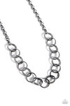 Chunky gunmetal links give way to sections of oversized and textured gunmetal links that boldly interlock below the collar, connecting into a classic centerpiece. Features an adjustable clasp closure.