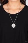 At the bottom of a shiny silver chain, a shiny silver disc is stamped with the phrase, "MOM a title just above Queen". The clasp attaching the disc to the chain features a collection of dainty white rhinestones, adding a hint of sparkle to the sentimental statement piece. Features an adjustable clasp closure.