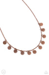 A dainty collection of mandala-like copper discs swings from an antiqued copper chain, creating a rustic radiance around the neck. Features an adjustable clasp closure.