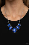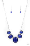 Gradually increasing in size, a dainty collection of glowing blue cat's eye oval stones delicately link below the collar for a whimsical pop of color. Features an adjustable clasp closure.