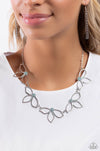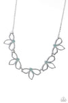 Featuring patina-brushed centers, dainty silver petals delicately link together and fan out below the collar for a whimsical fashion. Features an adjustable clasp closure.