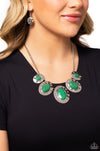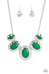 Gradually increasing in size, hammered silver oval frames are dotted with opalescent Leprechaun beads as they delicately link below the collar for a refreshing pop of color. Features an adjustable clasp closure.