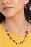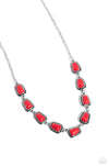 Encased in silver fittings, trapezoidal red stones delicately fan out around the collar for a dramatic pop of color. Features an adjustable clasp closure. As the stone elements in this piece are natural, some color variation is normal.