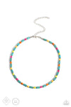 Infused on an invisible wire, cylindrical turquoise beads, silver discs, and circular multicolored stones coalesce around the collar for a colorfully earthy layer. Features an adjustable clasp closure. As the stone elements in this piece are natural, some color variation is normal.