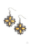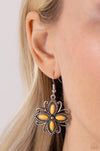 Featuring silver filigree accents, antiqued silver bars spin around Daffodil stone petals that bloom into an earthy flower. Earring attaches to a standard fishhook fitting.
